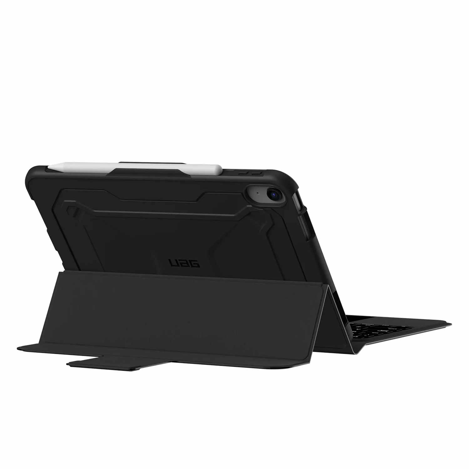 The UAG Bluetooth Keyboard Tablet Case is the perfect solution for those who demand the best of both worlds: protection and productivity. Featuring a durable TPU construction our Bluetooth Keyboard case is military drop certified and designed for the real world. The precise fit ensures a snug and secure fit for your tablet. Our spill-resistant keyboard shields your tablet from unexpected spills. With spacious contoured keys, you'll enjoy a comfortable and efficient typing experience. Navigate with precision using the integrated trackpad. The smooth, protective folio cover features a secure magnetic closure. Easily adjust your viewing angle with the built-in hinge. Keep your Apple Pencil close and secure with the built-in holder. Bluetooth connectivity delivers a quick and hassle-free pairing process with your tablet. The long-lasting rechargeable battery and a convenient USB-C charging port ensure you stay powered up throughout your day. Whether you're an on-the-go professional, an outdoor enthusiast, or a student, this case will keep your tablet safe and allow you to work or play without limits.