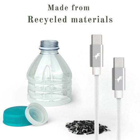 Our PowerKnit USB-C to USB-C Cable is capable of 60W charging. The fabric knit cable is made from recycled plastic and metal connector tips made with 100% recycled aluminum.