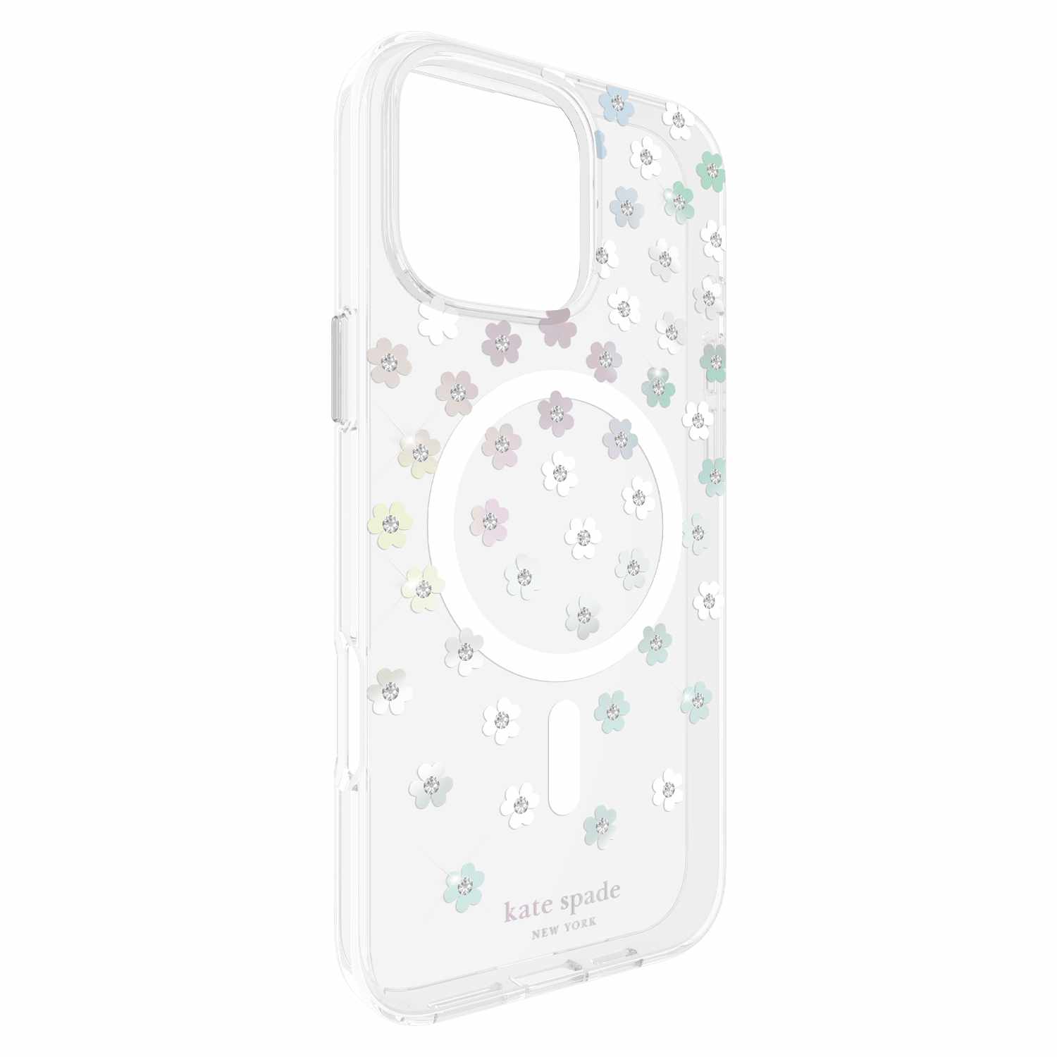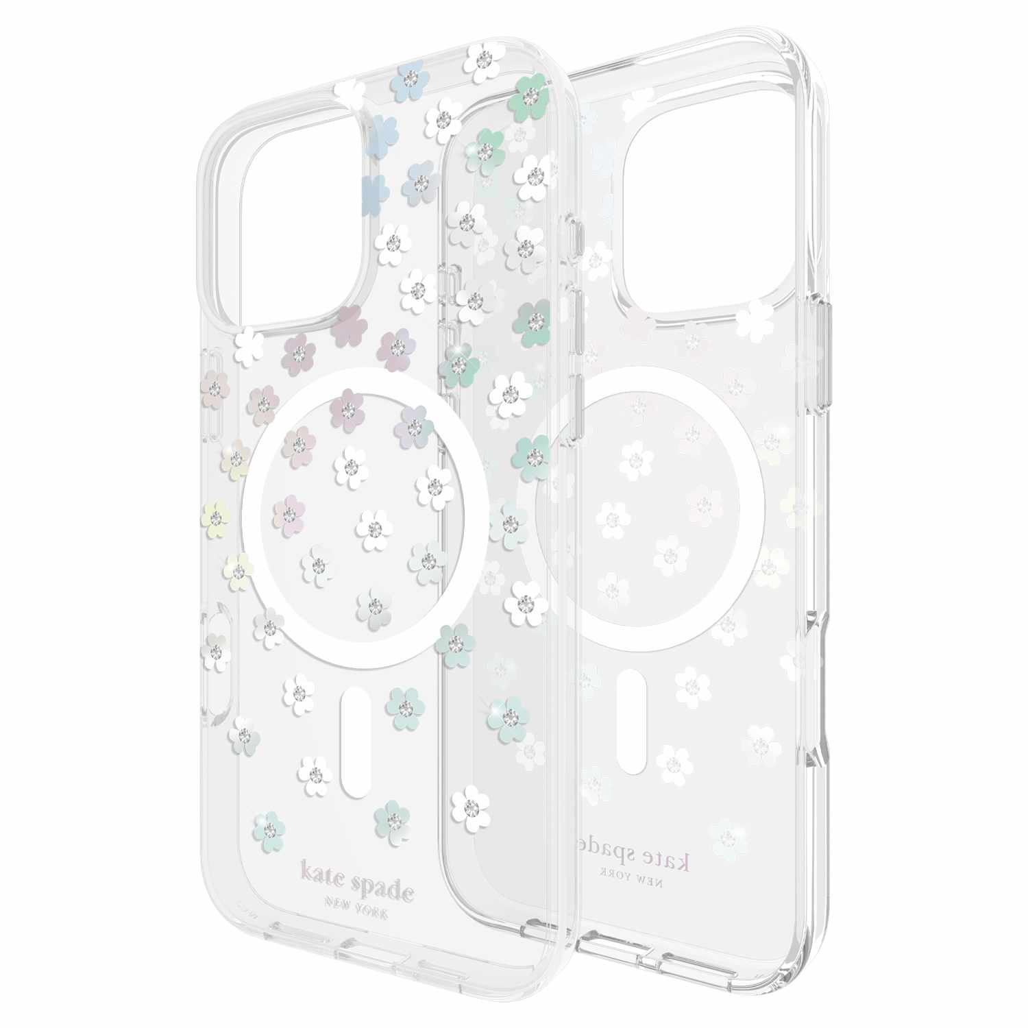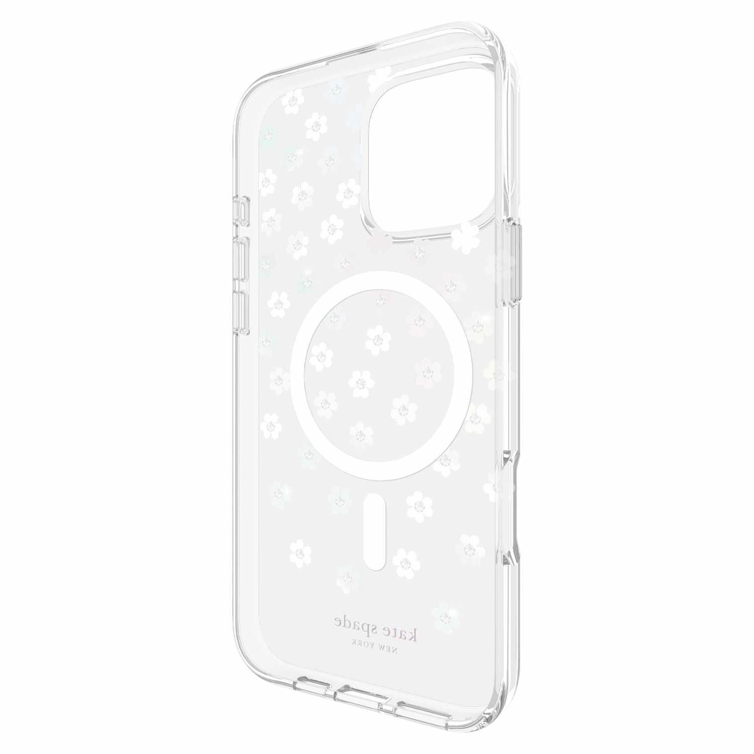 The Kate Spade New York hard protective case with MagSafe combines high fashion avec everyday practicality. A concentrate of elegance, the two-material hard protective case bearing the graphic signature and patterns of Kate Spade is as chic as it is protective.